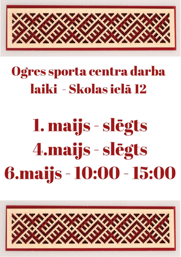 Ogres sporta centra darba laiki – Skolas ielā 12 – 1., 2. un 4.maijā