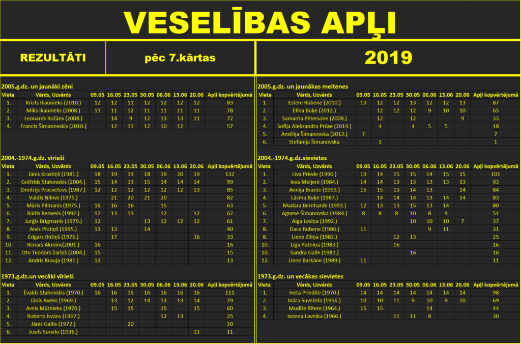 Skrējiena “Veselības apļi – 2019” rezultāti pēc 7.kārtas