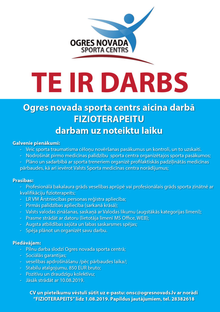 ONSC aicina darbā FIZIOTERAPEITU