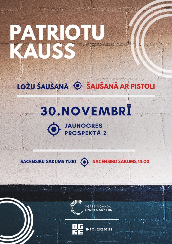 Ogres novada sporta centra šautuvē, Jaunogres prospektā 2, 30.novembrī tiks aizvadītas vērienīgas šaušanas sacensības – “Patriotu kauss 2019”
