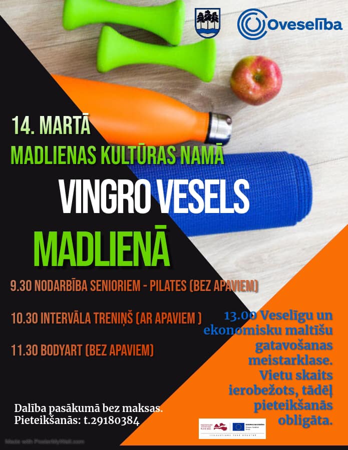 14.martā Madlienas kultūras namā norisināsies “Vingro vesels Madlienā”, ko organizē Oveselība.